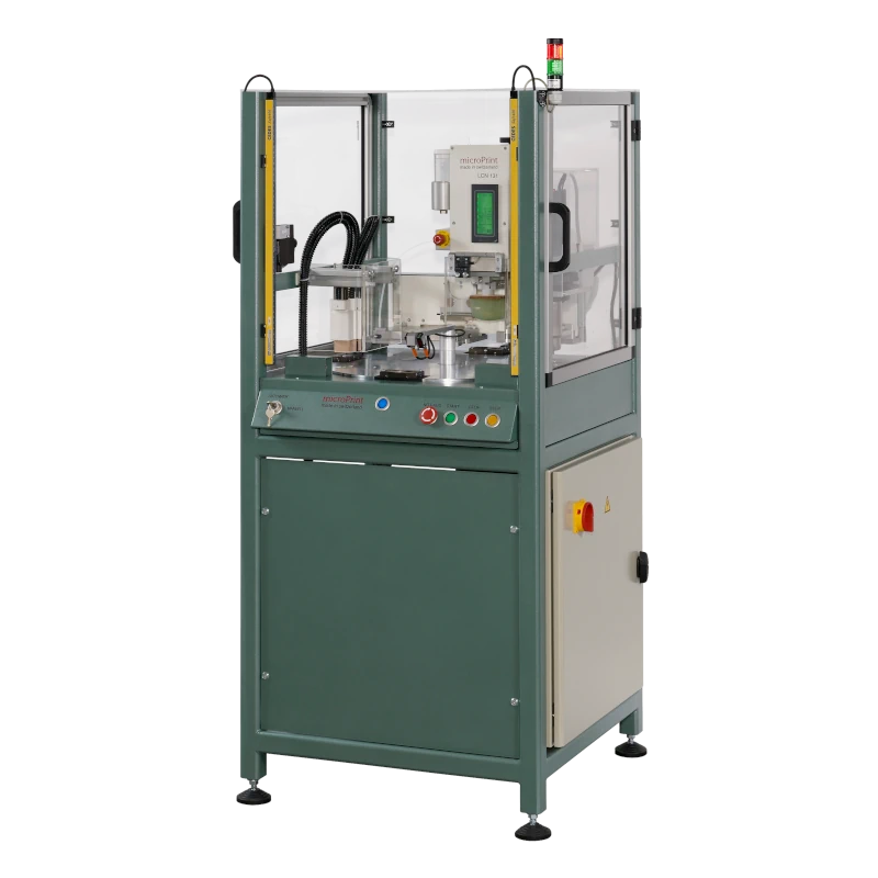 Die LCN-Linie druckt einfarbig und arbeitet mit geschlossenem Farbgeber. Die maximale Topfgröße beträgt 140 mm im Durchmesser. Bei Bedarf ist auch ein pneumatisch verstärkter Topfhalter verfügbar. Mit den optionalen microPrint Viskomaten wird zudem die Viskosität der Farbe selbstständig reguliert. Eine Spezialvariante bietet den Einsatz von bis zu 3 Töpfen, um so das Bedrucken mehrerer Nutzen zeitgleich zu ermöglichen.