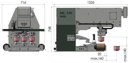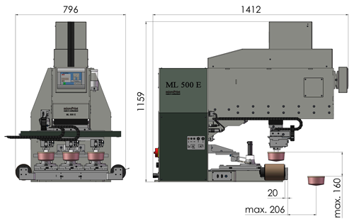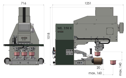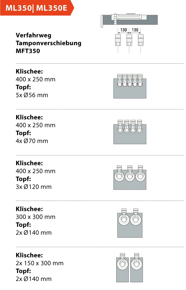 Die ML-Linie bietet mehrfarbige Tampondruckmaschinen mit elektrischer Positionierung und wählbarem pneumatischen oder elektrischen Tamponhub. Das Einstellen der Druckpositionen erfolgt über das grafische, mehrfarbige Touchdisplay. Der Druckablauf ist frei programmierbar. Es kann eine Vielzahl an Druckbildern auf ein Klischee positioniert werden. Diese sind individuell ansteuerbar, um so komplexe Druckbilder zusammenzusetzen oder verschiedene Varianten zu drucken. Auftragsdaten werden komplett abgespeichert und können für Wiederholaufträge jederzeit erneut abgerufen werden, was die Rüstzeiten deutlich reduziert. Druckpositionen können durch eine Kamera oder über eine Schnittstelle von einem übergeordneten System in Echtzeit korrigiert werden. Für das Teilehandling steht eine Vielzahl an Möglichkeiten offen: von der pneumatischen Verschiebung, einer elektrischen 2-achsigen Drehung über Vakuumklemmen und Teilesensoren, bis hin zur Korrektur der Teileposition durch eine Kamera.