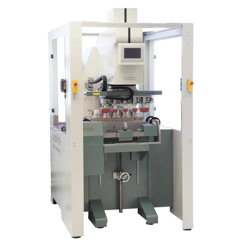 Die ML-Linie kann als Handarbeitsplatz mit Sicherheitszelle oder in eine Anlage integriert werden. Sie eignet sich für komplizierte Teile mit vielen, an unterschiedlichen Positionen gedruckten Bildern sowie für Anwendungen, die eine hohe Präzision im gesamten Druckablauf erfordern (z.B. bei mehrfarbigen Bildern mit feinen Strukturen oder beim Rasterdruck). Ideal für die parallele Bedruckung mehrerer Teile in einer Spritzgussmaschine.Sensible Druckabläufe (z.B. gedruckte Elektronik, lichtdichter oder transluzenter Druck, Bedruckung rauer Oberflächen oder Glas) lassen sich optimal mit dem elektrischem Hub bewerkstelligen.