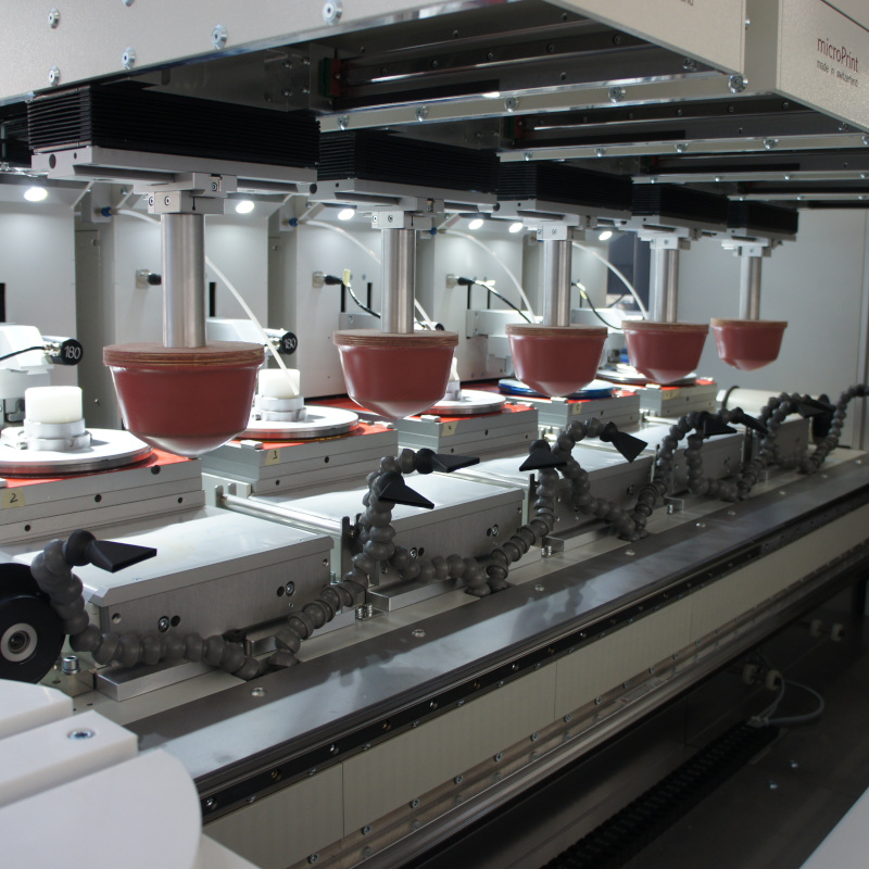 Die Modul-Linie wird meist in Anlagen eingesetzt. Sie eignet sich für Teile mit vielen an unterschiedlichen Positionen gedruckten Bildern, wie auch für den Druck unterschiedlicher Varianten in einem Druckjob. Für Anwendungen mit kurzen Zykluszeiten und hoher Präzision. Mehrere Einheiten an einem Transportsystem können parallel sehr hohe Stückzahlen mehrfarbig bedrucken. Durch einen Linearantrieb mit einer Aufnahme in Kombination mit Drehvorrichtung können große und komplexe Teile in einem Ablauf bedruckt werden. Für sensible Druckabläufe (z.B. bei gedruckter Elektronik, lichtdichtem oder transluzenten Druck) empfehlen wir den elektrischen Tamponhub.