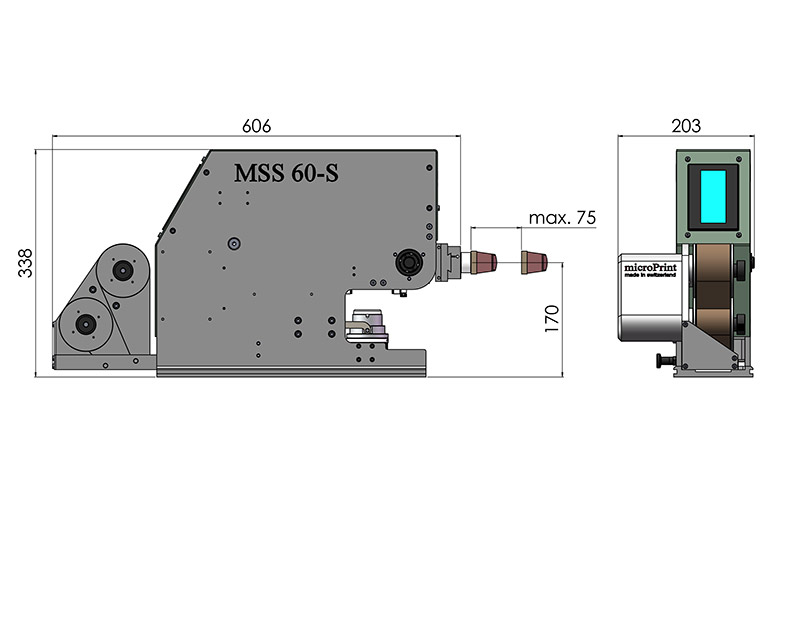 Die MSS-Linie wurde speziell für Anlagen konzipiert, in denen das Druckteil nicht gedreht werden kann und eine horizontale Bedruckung erforderlich ist – zum Beispiel bei Autobremsbelägen, die auf einem Förderband transportiert werden und präzise auf der Stirnseite bedruckt werden müssen. Im Gegensatz zur Konkurrenz kann die MSS vollständig von der Rückseite aus umgerüstet und bedient werden.
