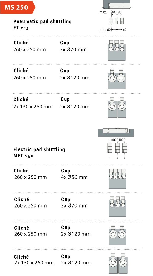 | Cliché sizes max. [mm] | 260 x 250 x 10/0,5 |