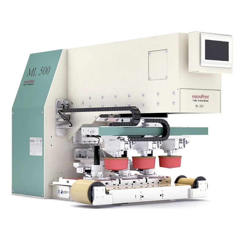 Vi dækker hele spektret – fra enkle pneumatiske begyndermodeller med manuelt justerbart krydsbord til industrimodeller med integreret mekanisk justering af trykposition, automatisk farvefortynding og overvågning af rensebåndet – til fuldt elektriske systemer med frit programmerbare sekvenser, elektrisk justerbare positioner og præcis kontrol af tamponens løftehastighed ved hvert enkelt slag. Hvis der ikke findes en passende standardløsning, udvikler vi kundespecifikke tampontrykmaskiner, der er skræddersyet til vores kunders behov. Afhængigt af anvendelsen udstyrer vi vores systemer med udvidede funktioner – f.eks. individuelle emneholdere, drejeenheder, vakuumholdere, udblæsningsenheder til tamponer, sikkerhedsceller, klisékøling eller laminar flow-systemer. Trykprocessen kan også overvåges med kamerasystemer. I elektriske versioner er automatisk korrektion af trykpositionerne også mulig.